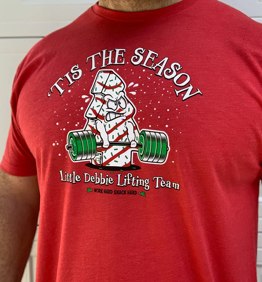 Well, it's that time of year again ... time for Little Debbie Christmas Tree Cakes! No matter your age, you can't get past how perfect that small arbor day delicacy is! The icing, the filling, the cake, the green sprinkles! Show your love for the king of Christmas treats and the king of lifts with this seasonal shirt ... and don't forget to freeze a few boxes for Christmas in July!