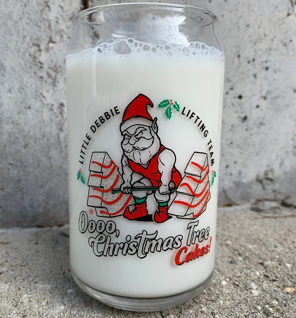 Every good snack cake needs a glass of milk … especially at Christmas when there are Tree Cakes to eat! This glass also holds eggnog and protein shakes perfectly!