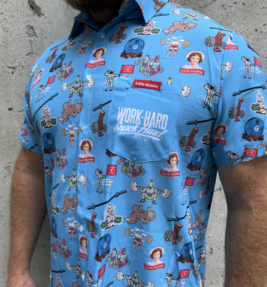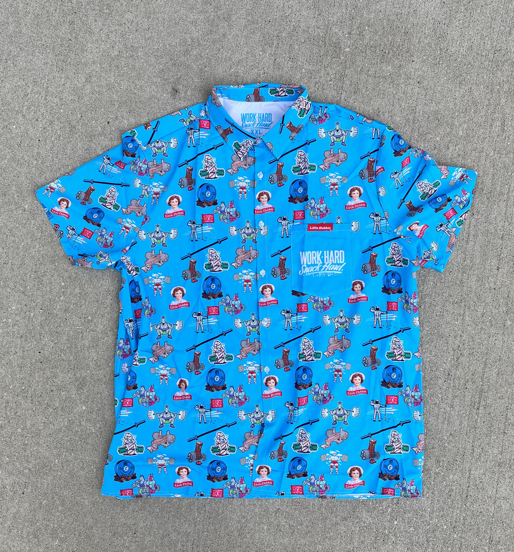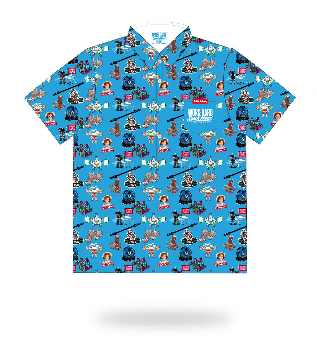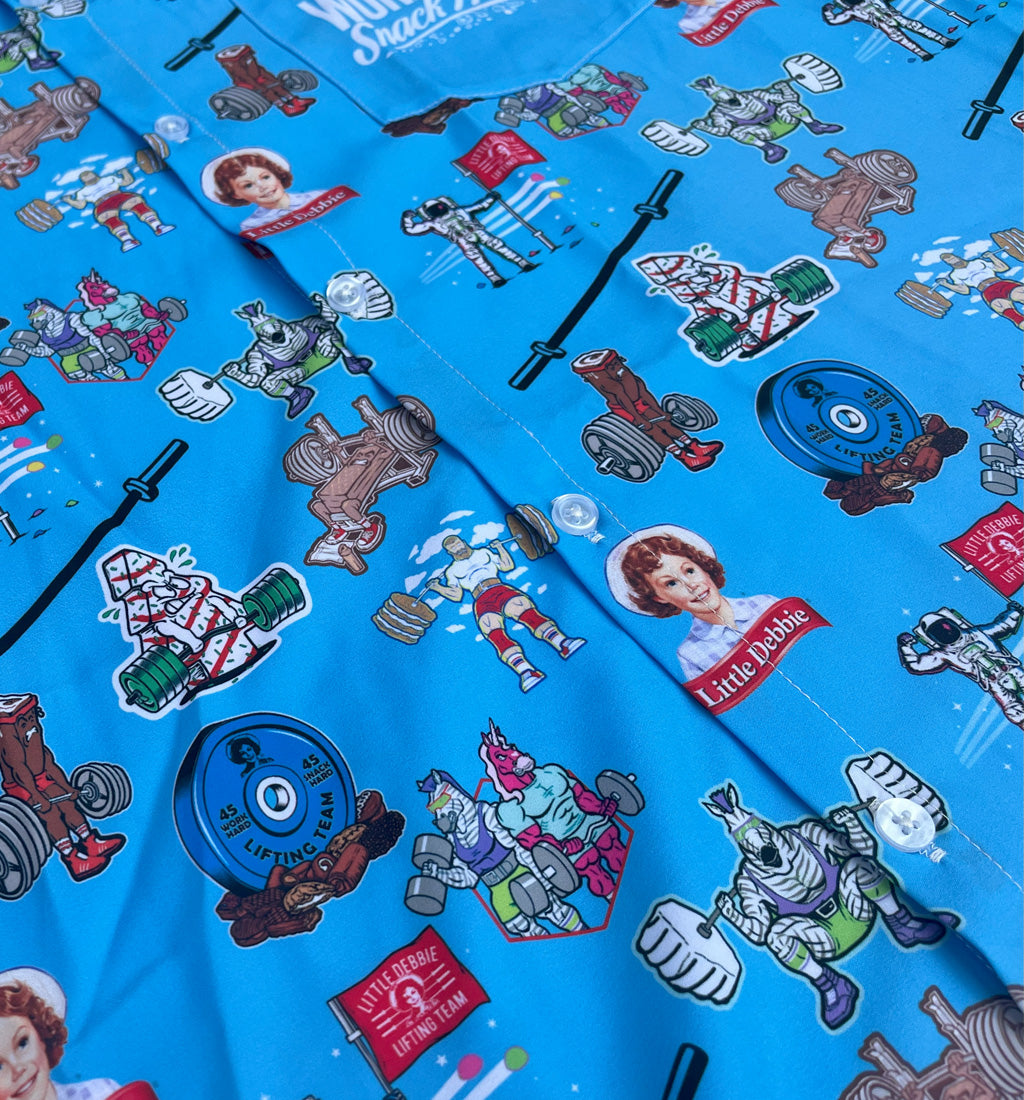 Summer is in full swing, and so are your sweat glands! Grab this shirt that's both cool and ... well, cool! Filled with my favorite "team" characters, your arm gains and boulders for shoulders will be accentuated nicely in this colorful buttonup! Fancy enough for church, family reunion or charity golf event, while comfy enough for a casual Friday pump at the gym!