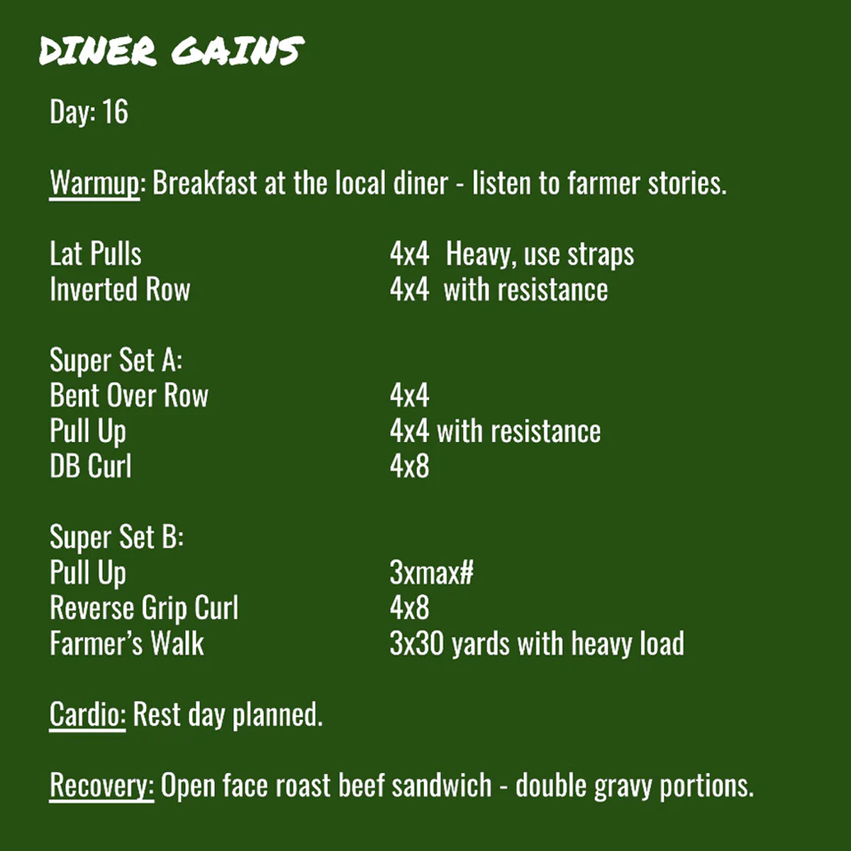 There's nothing like the natural strength of a "corn fed" country boy! Now, train for that country boy strength! Whether you want to be a "Thick Hick" or flex your 4x4 power while cruising downtown, one thing is for sure; you're gonna fill out those Wranglers and Dickies when this month is over!